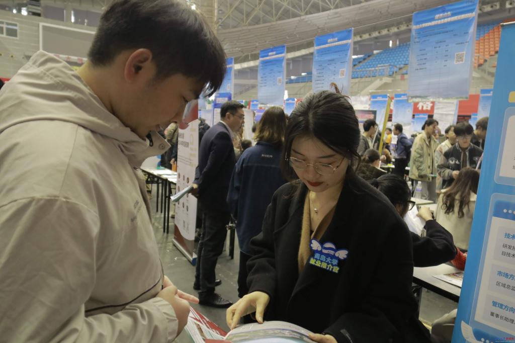 學校從各學院(部)分管領導、畢業生輔導員、班主任、專業導師中選聘了畢業生“就業推介官”,在雙選會期間隨處可見他們忙碌的身影。在為學生精準推薦就業崗位、引導學生投遞簡歷的同時,推介官們深入調研相關行業、重點企業的用人需求,開展洽談合作,積極搭建學校人才培養和企業招聘的溝通橋梁。