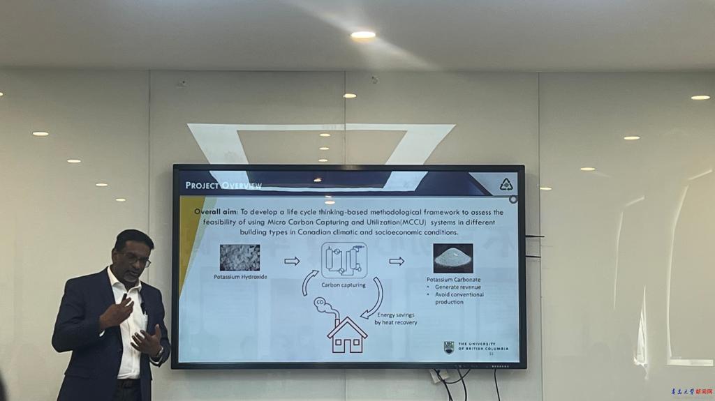 加拿大英屬哥倫比亞大學(UBC)奧卡納甘分校教授、生命周期管理實驗室(LCML) 聯合負責人Kasun Hewage,加拿大工程研究院院士、北英屬哥倫比亞大學(UNBC)教授LI Jianbing一同到訪。學校科技處、人力資源處、國際交流合作處、環境科學與工程學院主要負責人參加了會議。會前,代表團一行參觀了我校分析測試中心和校史館。