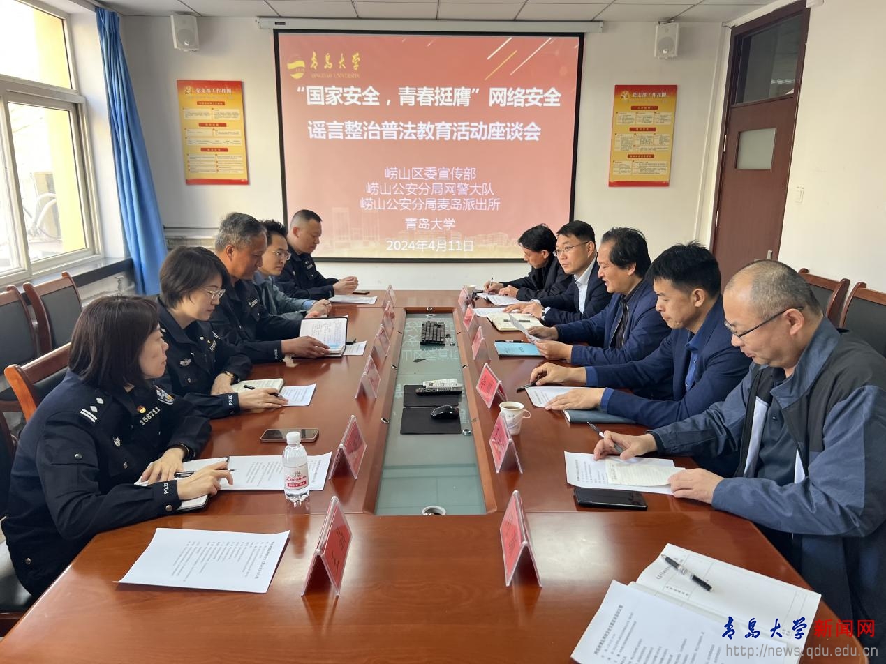黨委宣傳部、黨委學生工作部、黨委保衛部聯合物理科學學院于4月11日在浮山校區舉辦“國家安全 青春挺膺”國家安全普法教育活動,并舉行國家安全暨網絡安全校警聯動工作研討會。青島市網警支隊牛莎莎圍繞國家安全、網絡安全、網絡暴力、輿情管理等為同學授課。嶗山區麥島派出所王晶以案釋法警示廣大師生提高自身防范意識,時刻保持清醒頭腦,為構建和諧平安文明的校園環境筑牢安全基礎。