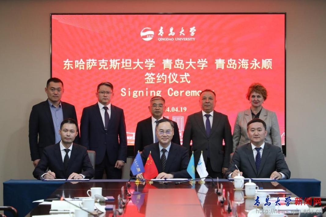 李軍、托列根·穆赫塔爾和韓光達(dá)分別代表青島大學(xué)、東哈薩克斯坦大學(xué)和海爾海永順創(chuàng)新科技股份有限公司簽署了三方合作協(xié)議。