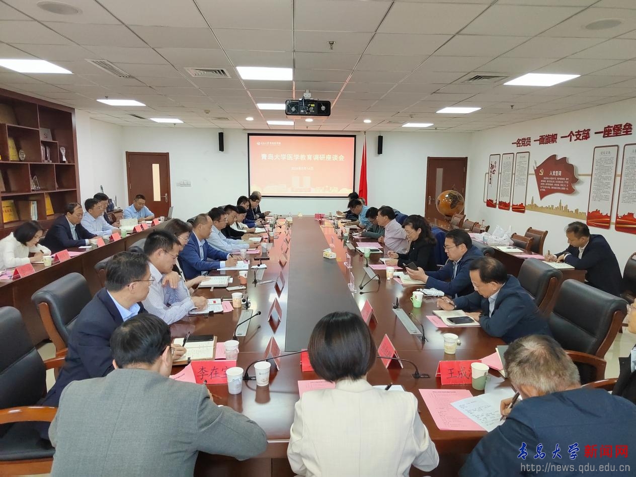 魏志強(qiáng)在聽取匯報(bào)后,對(duì)醫(yī)學(xué)部近年來在人才培養(yǎng)、學(xué)科建設(shè)、科學(xué)研究和社會(huì)服務(wù)等方面取得的成績(jī)給予充分肯定。他指出,青大醫(yī)學(xué)教育歷史悠久、底蘊(yùn)深厚,具有較高的社會(huì)知名度和影響力,承擔(dān)著學(xué)校“沖一流”的使命和夢(mèng)想,在學(xué)校事業(yè)發(fā)展中發(fā)揮著不可或缺的作用,學(xué)校始終高度重視和支持醫(yī)學(xué)教育。對(duì)未來醫(yī)學(xué)教育的發(fā)展,他強(qiáng)調(diào),要貫徹落實(shí)好胡金焱書記提出的“以辦學(xué)思維辦醫(yī),以醫(yī)學(xué)帶醫(yī)療,以教學(xué)科研帶臨床,以高水平學(xué)科建設(shè)帶高水平醫(yī)院建設(shè),推進(jìn)醫(yī)教研一體化協(xié)同發(fā)展”的發(fā)展理念和思路,在新起點(diǎn)上加快建設(shè)一流的醫(yī)學(xué)教育和附屬醫(yī)院。一是要找準(zhǔn)定位,逆勢(shì)而上。當(dāng)前我校醫(yī)學(xué)教育面臨諸多競(jìng)爭(zhēng)和挑戰(zhàn),同時(shí)也蘊(yùn)含著發(fā)展機(jī)遇和潛力,對(duì)問題和困難不能回避,要懷揣夢(mèng)想、勇于面對(duì)、逆勢(shì)而上,各項(xiàng)工作要有思路、有方法、有舉措,全力以赴在學(xué)科競(jìng)爭(zhēng)中突圍勝出。二是要明確目標(biāo),實(shí)現(xiàn)突破。堅(jiān)持“目標(biāo)一流、思想一流、行動(dòng)一流”,樹立高遠(yuǎn)的目標(biāo),堅(jiān)定一流信念,守正出奇、勇于革新,積極爭(zhēng)取政策、人才、師資等方面的資源,用加倍的努力爭(zhēng)取早日實(shí)現(xiàn)一流學(xué)科建設(shè)的突破。三是要聚焦主線,融合發(fā)展。青大醫(yī)學(xué)各學(xué)科、各學(xué)院要堅(jiān)持“四個(gè)面向”,適應(yīng)社會(huì)發(fā)展的需求,努力提升社會(huì)服務(wù)能力。要聚焦優(yōu)勢(shì)特色學(xué)科,匯聚資源,重點(diǎn)突破,以點(diǎn)帶面,形成合力,最終實(shí)現(xiàn)整體性高質(zhì)量發(fā)展。要發(fā)揮綜合性大學(xué)優(yōu)勢(shì),大力推進(jìn)醫(yī)工交叉融合、醫(yī)教研協(xié)同發(fā)展,打造青大醫(yī)學(xué)的特色和優(yōu)勢(shì),奮力譜寫青大醫(yī)學(xué)教育高質(zhì)量發(fā)展的新篇章。