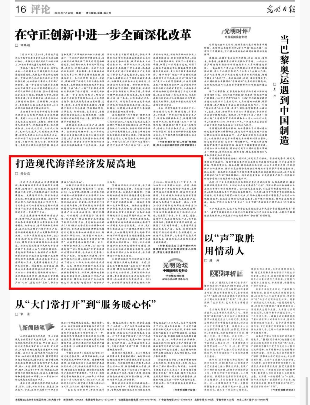 新聞網訊 7月22日,《光明日報》刊登我校黨委書記胡金焱的理論研究文章“打造現代海洋經濟發展高地”。