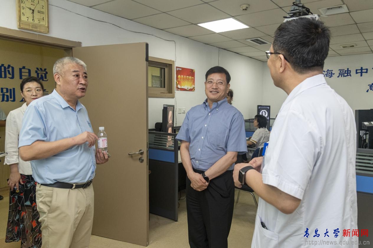 魏志強強調,實現“雙一流”建設的突破是青島大學不可回避的歷史責任和現實使命,醫學作為傳統優勢學科要勇于承擔一流學科建設的使命。學校將發揮綜合性大學優勢,加快布局并強力推進人工智能等醫工交叉融合,推動科技創新,在智慧診療、醫用材料、醫用紡織產品、醫療電子產品、醫療器械裝備、特醫食品、醫養健康等領域取得突破進展,服務人類生命健康及相關產業發展,使醫工交叉成為學校特色優勢。同時學校將加強國際合作尤其是加強與上合組織及“一帶一路”國家的交流合作,服務上合示范區國家戰略,打造“一帶一路”國際合作新平臺,努力把學校建設成為醫工交叉特色鮮明國際化高水平綜合性研究型大學,實現“雙一流”建設的突破。他重點了解了各附屬醫院的特色優勢及發展需求,他指出學校將充分發揮綜合性大學辦醫學教育優勢,從人才引育、師資培訓、研究生招生、教學科研資源共享等方面給予各附屬醫院大力支持,持續推動各附屬醫院和學校協同融合發展。他要求各附屬醫院要進一步加大科技創新和人才培養投入,改善教學科研條件,促進醫教研產一體化發展,提升區域醫療服務水平,增進人民健康福祉,帶動產業和區域經濟發展。要找準發展定位,培育優勢特色,力爭在某個細分領域以一流的目標、一流的思想、一流的行動和一流的合作,爭創國內一流,為學校“雙一流”建設做出不可替代的、突出的、重要貢獻。他還就中醫藥學院建設、青島大學醫學醫療中心建設、口腔醫學院建設、擴大醫學相關專業招生規模等與各附屬醫院進行了深入細致的溝通交流,以共同推動一流的青島大學附屬醫院體系建設。