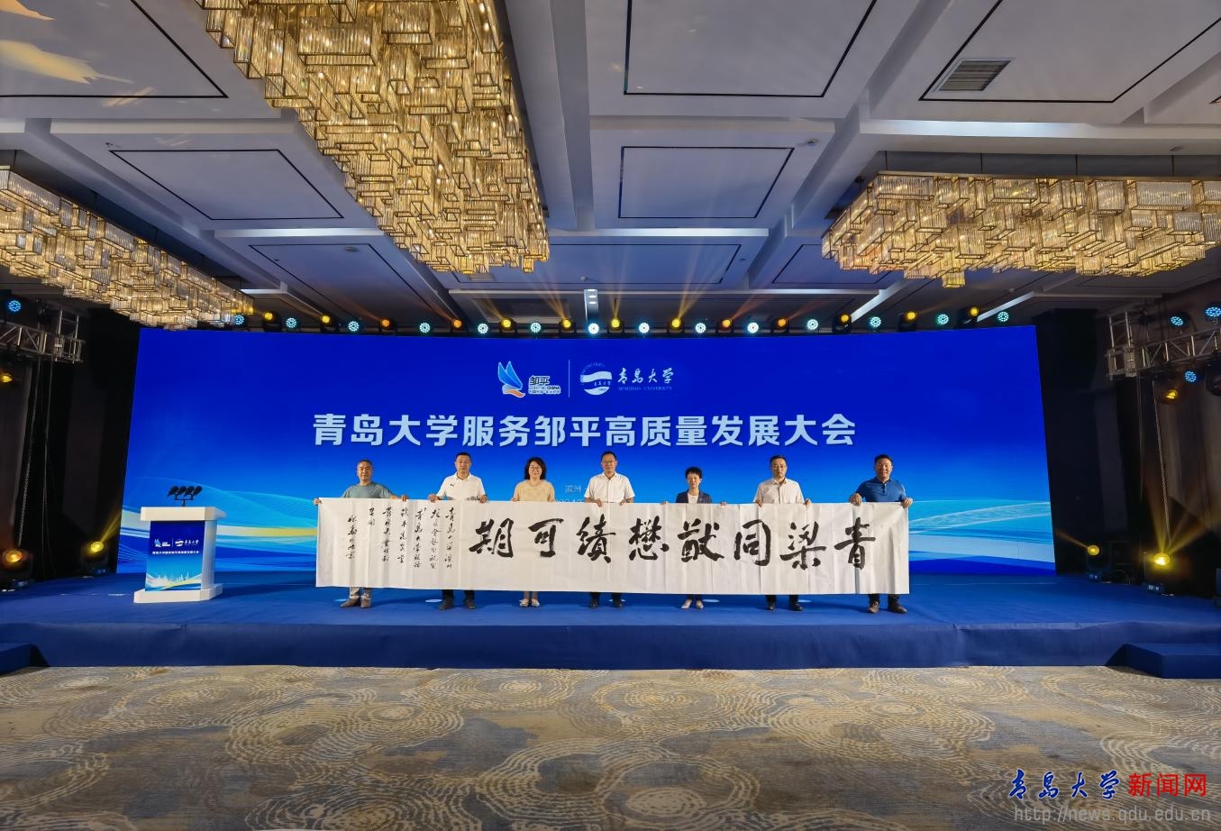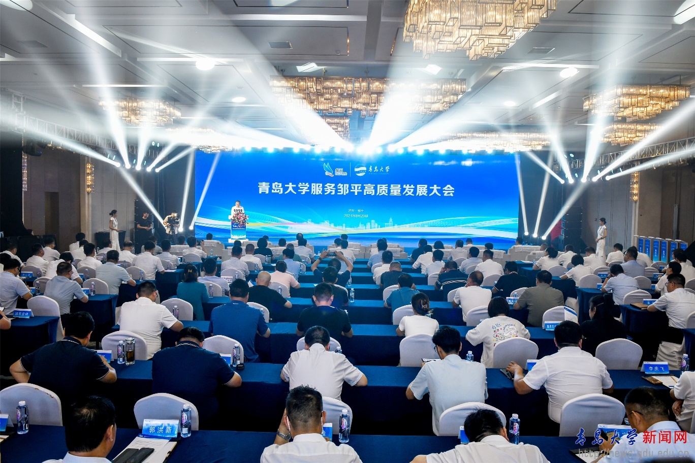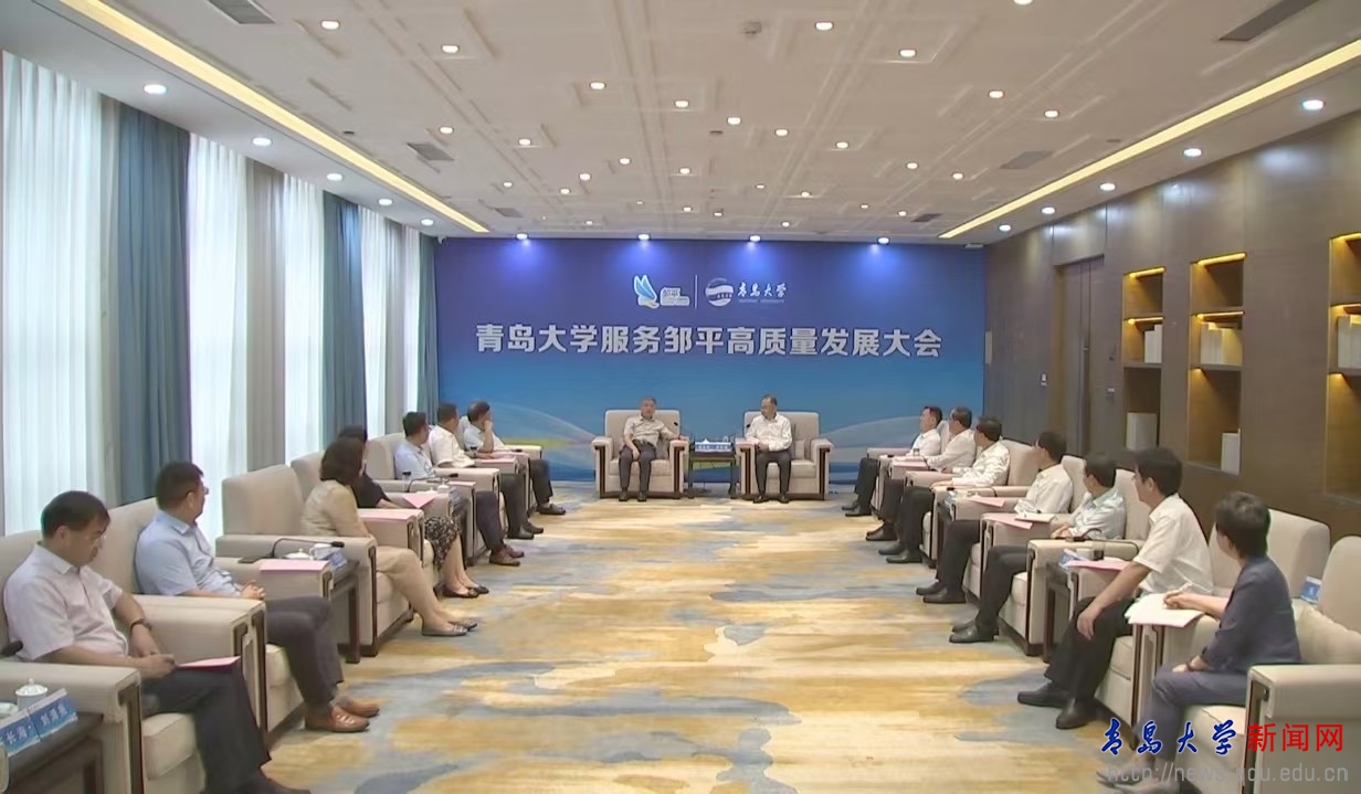 新聞網訊 8月20日,青島大學服務鄒平高質量發展大會在鄒平召開。校黨委書記胡金焱,濱州市委常委、副市長、濱州高新技術產業開發區黨工委書記屈躍寬,濱州市副市長、鄒平市委書記呂明濤出席會議。校領導李榮貴、劉恩賢,鄒平市委常委、市委辦公室主任郝凱軍,鄒平市委常委、副市長陳靜參加會議。會議由鄒平市委副書記劉德軍主持。