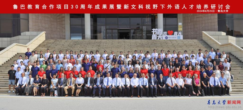巴州科學藝術部部長馬庫斯·布魯默、青島市委外辦主任范奇志、德國駐華大使館臨時代辦葛若海和省委外辦歐洲處處長周家倫先后以線下或線上等方式致辭。他們在講話中都充分肯定了魯巴教育合作項目——青島大學外語學院德語系30年來的人才培養成果對魯巴、中德交流合作的橋梁和助力作用,也期待項目和青大德語系的健康發展繼續為魯巴友好關系以及中德兩國互利合作和民心相通注入新的動力。