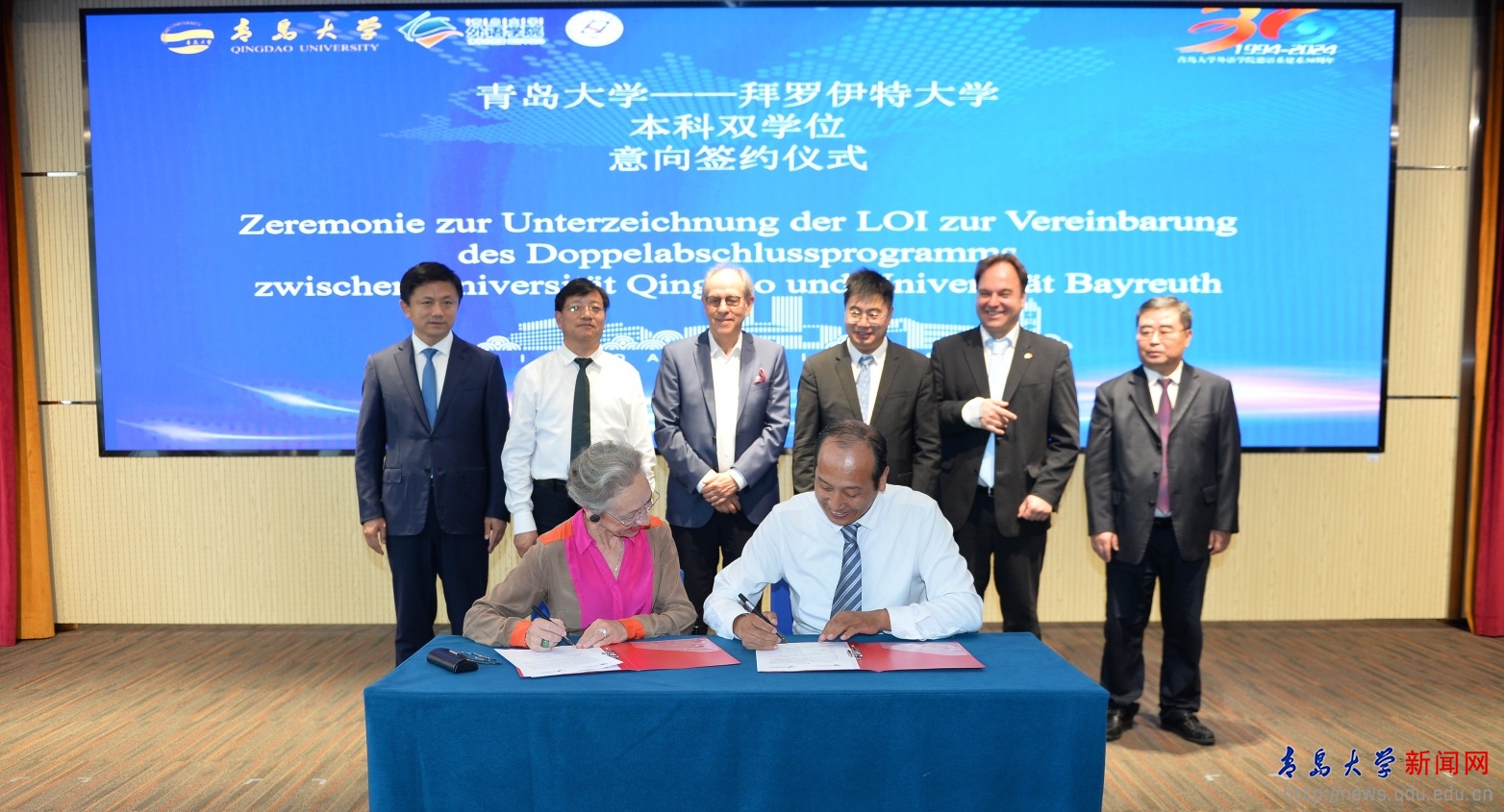 簽約環節上,我校外語學院德語系主任綦甲福和拜羅伊特大學跨文化日耳曼學系主任格辛·施韋爾分別代表兩校簽署了本科雙學位聯合培養意向書。