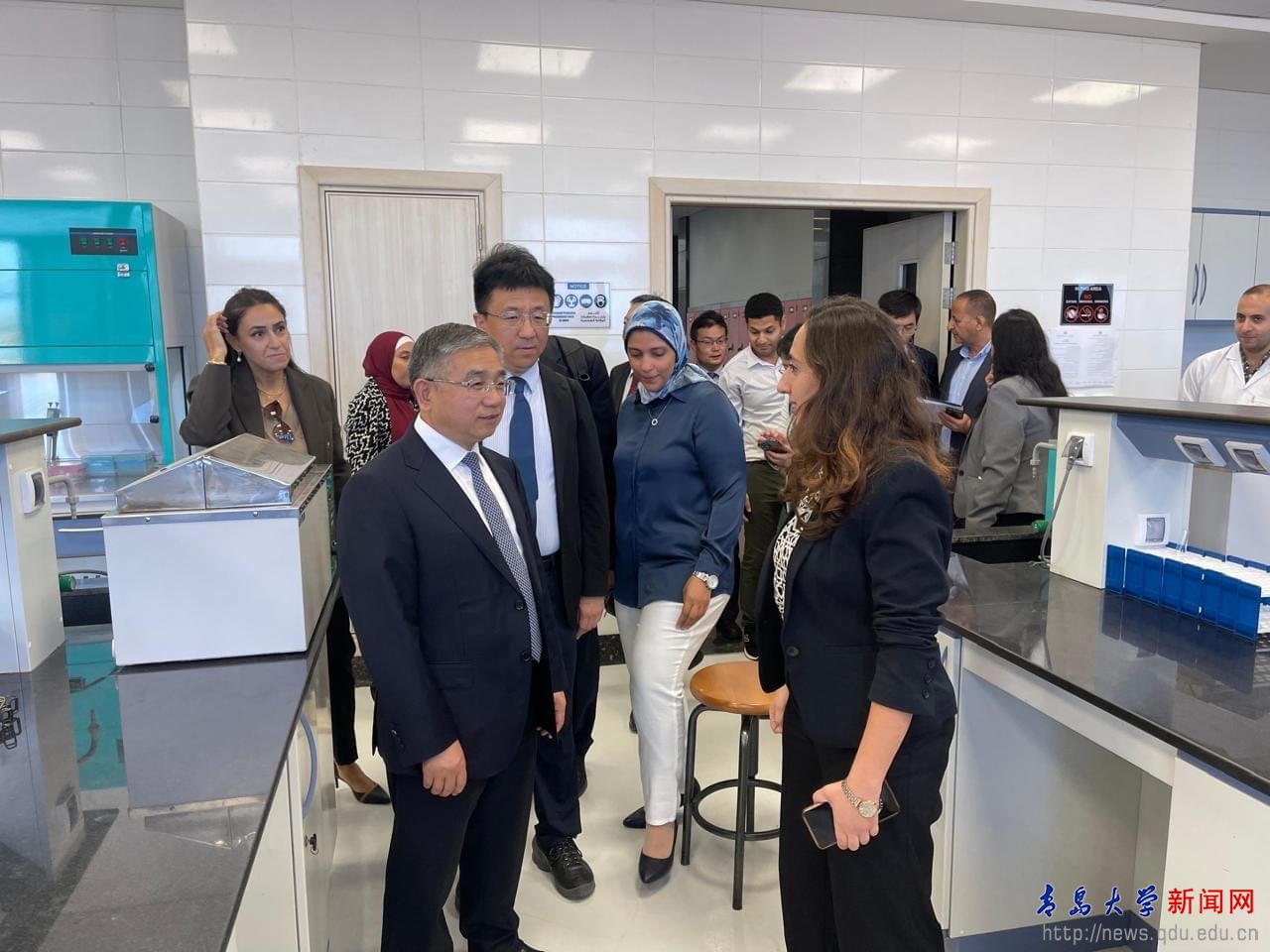 在埃及阿盟科技與海運學院訪問期間,胡金焱與該校校長伊斯梅爾(Ismail Abdel Ghafar)舉行了工作會談,雙方簽署了合作協議。今后,雙方將在臨床醫學、藥學、中文教育等領域開展合作,并將創造條件推動教師和學生的訪問交流,雙方還將相互支持阿方阿拉伯語和國際中文教育學科建設。會后,代表團一行參觀了阿盟科技與海運學院會議中心、航海虛擬實驗中心、藥學實驗中心等教學機構和實驗設施。中國駐埃及亞歷山大代總領事金輝全程參加了上述活動。