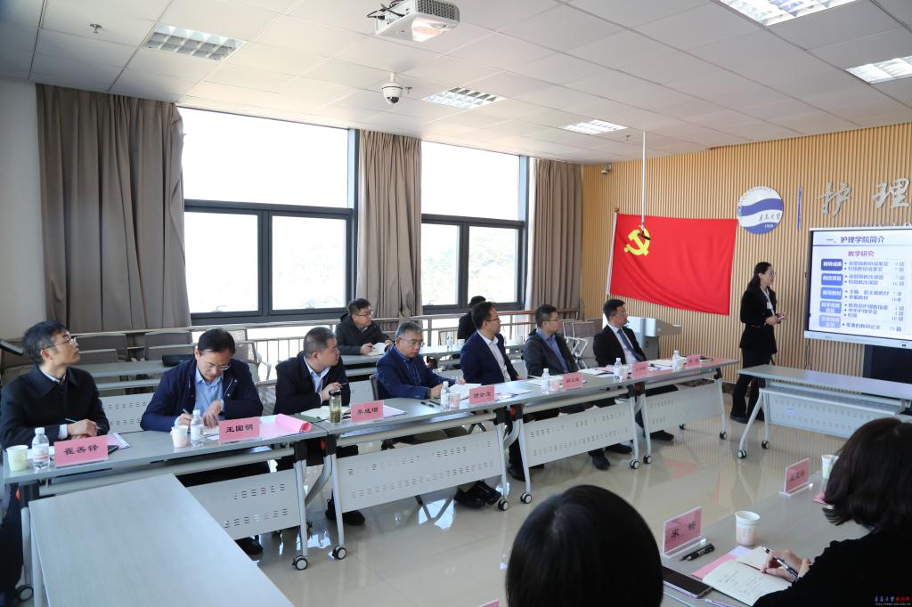 校黨委辦公室、校長辦公室,黨委組織部,教務處,研究生院,人力資源處,青島醫學院等部門負責人陪同調研并給予相關發展意見和建議。護理學院領導班子、黨支部書記、教師代表參加了本次調研。