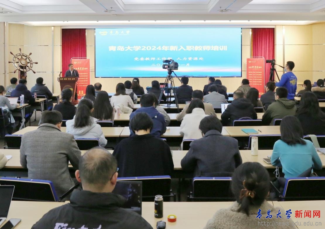 胡金焱首先代表學(xué)校黨委對新入職教師加入青島大學(xué)、成為青大人表示熱烈歡迎。緊緊圍繞“人才隊伍建設(shè)是學(xué)校事業(yè)發(fā)展的根本所在”“新時代高等教育教學(xué)改革的新要求”“‘重塑’高等教育教學(xué)模式”“守護(hù)大學(xué)教師的職責(zé)與情懷”和“課程育人的‘五個一工程’”等五個方面進(jìn)行了深入闡述,勉勵新入職教師快速適應(yīng)高校教師角色,主動擔(dān)當(dāng)、積極作為,努力成長為新時代優(yōu)秀的高校教師。