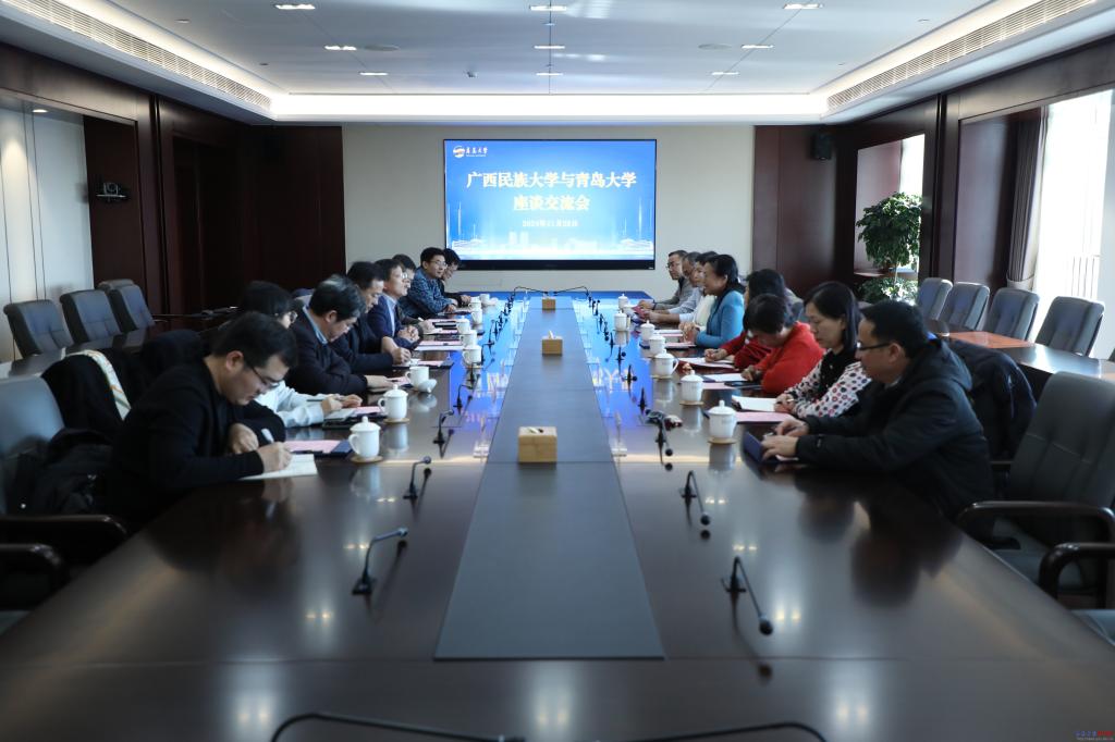 新聞網訊 11月28日上午,廣西民族大學黨委副書記、校長韋仕珍一行到我校調研交流,校長魏志強在會議中心302致遠廳與來賓一行進行座談交流,校黨委常委、副校長李建波陪同調研。