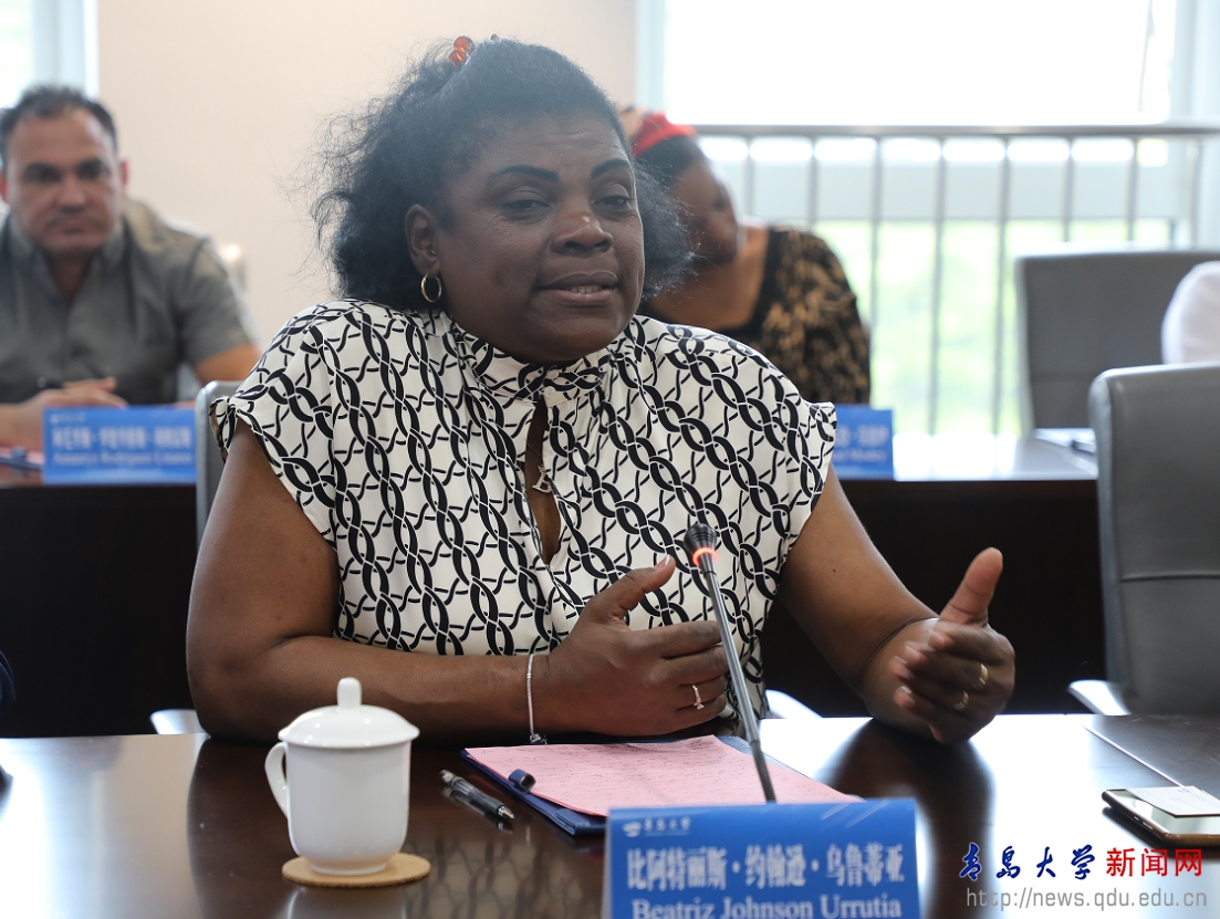 約翰遜對我校的接待安排表示感謝,對我校近年來快速發(fā)展以及推動與古巴高校合作印象深刻。她說,青島大學歷史悠久,以其出色的學科以及科教文衛(wèi)知識助力了地方經(jīng)濟社會發(fā)展。希望今后在推動古巴高校與青島大學西班牙語和學術科研方面交流合作同時,在黨建等方面也能開展互學互鑒,實現(xiàn)共同發(fā)展。