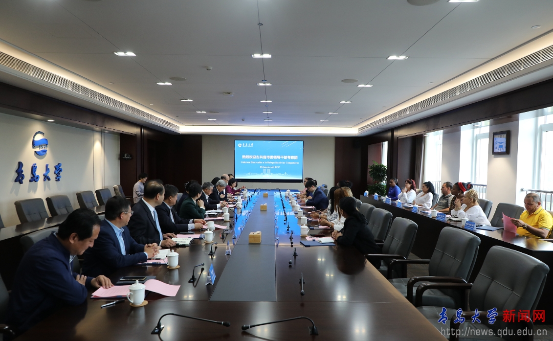 新聞網(wǎng)訊 5月15日下午,古巴共產(chǎn)黨中央委員、圣地亞哥省委第一書記比阿特麗茲·約翰遜·烏魯?shù)賮喡暑I “古共省市委領導干部考察團”一行15人來我校訪問交流,校黨委書記胡金焱在會議中心302會議室會見并與代表團進行了座談交流。中聯(lián)部五局、青島市委外辦有關負責人陪同考察團來校訪問。校黨委常委、副校長何燕主持座談會,校黨委常委、宣傳部部長吳世珍出席座談會。