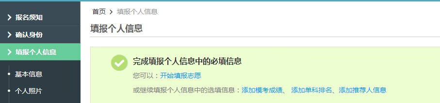 注冊成功后,請使用注冊的用戶名和密碼登錄“綜合評價報名系統”,請仔細閱讀“報名須知”,只填寫基本信息、個人照片、中學信息、成績信息(只填一科成績即可)、選考科目成績信息等系統必填項即可。