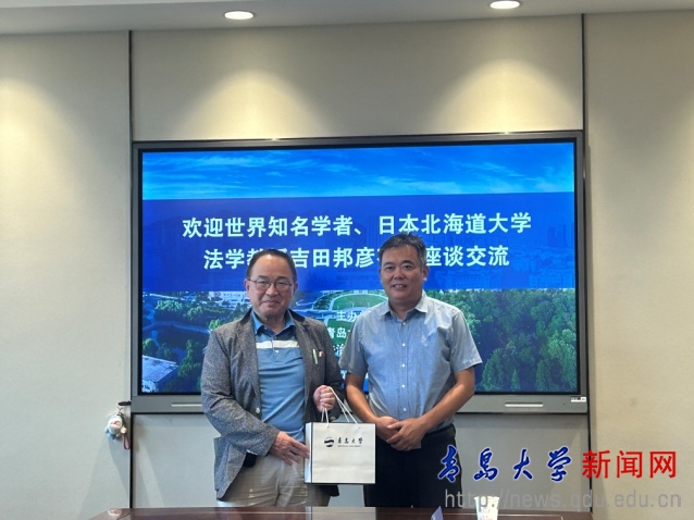 新聞網訊 8月17日上午,世界知名學者、日本北海道大學法學教授吉田邦彥在泰華商恒(青島)聯營律師事務所副主任欒靜及鄭海律師陪同下到青島大學走訪交流,青島大學法學院黨委書記李建新、院長蔡穎雯、副書記龐在辛、副院長馬衛東、研究生代表祖凌云共同參與接待。交流會議由蔡穎雯主持。