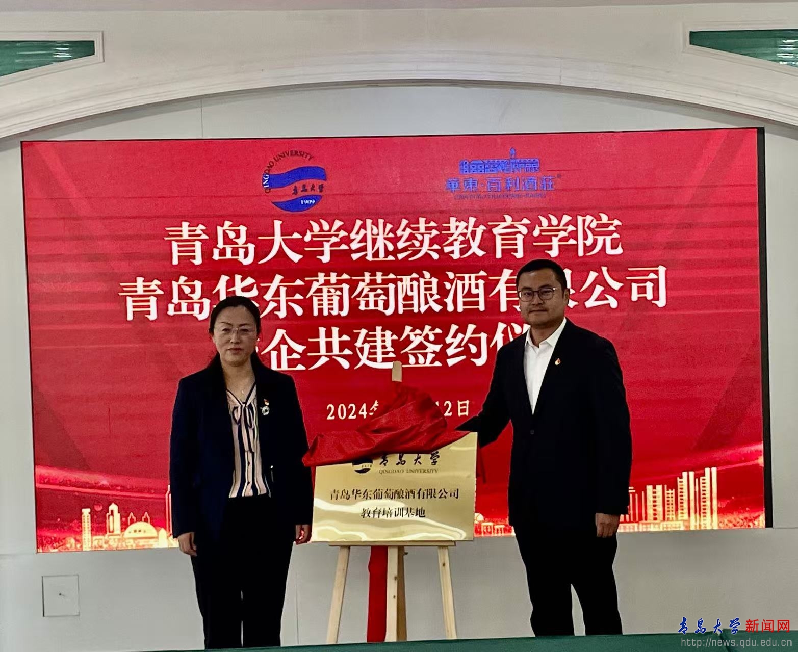 耿寶福、嵇可琳簽署了《青島大學與青島華東葡萄釀酒有限公司教育培訓基地合作協議書》,張燕、魏帥強為青島大學—青島華東葡萄釀酒有限公司教育培訓基地揭牌。應用技術學院教工第二黨支部書記初秀榮、青島華東葡萄釀酒有限公司第一黨支部書記劉春生簽署了《黨建共建協議書》。