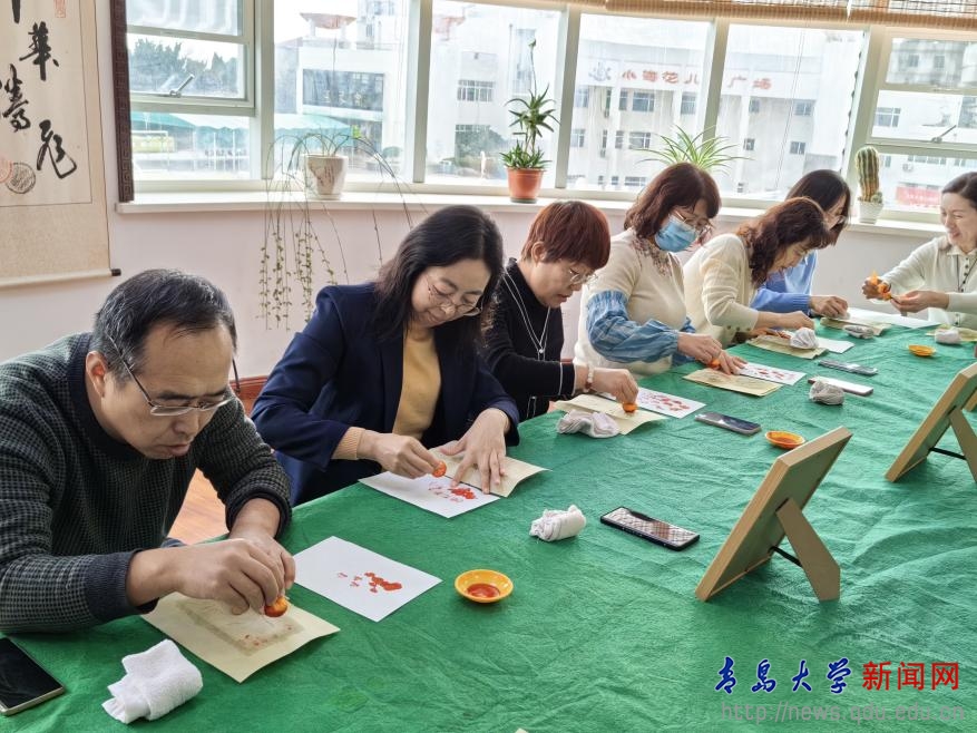 新聞網訊 為慶祝“三八”國際勞動婦女節,傳承中華優秀傳統文化,領略非遺拓印的獨特魅力,激發教職工的工作熱情和創造力,3月5日下午,經濟學院工會、婦委會舉辦“拓福迎春”非遺拓印體驗活動。院黨委副書記、工會主席于文潔帶領教職工赴青島市婦女兒童活動中心參加活動。