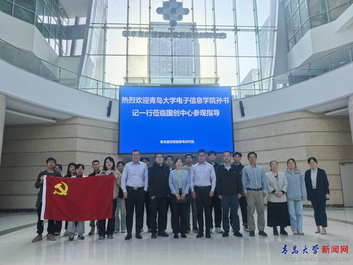 新聞網(wǎng)訊 4月25日,?電子信息學(xué)院微納電子學(xué)系教工黨支部前往青島國創(chuàng)智能家電研究院(以下簡稱國創(chuàng)中心)?組織開展了?“黨旗引領(lǐng)創(chuàng)新路,智匯家電中國芯”?主題黨日活動(dòng)。電子信息學(xué)院黨委書記孫麗娜、副院長姚釗、微納電子學(xué)系黨支部書記曹明惠、教師黨員和學(xué)生黨員代表參加了此次活動(dòng)。