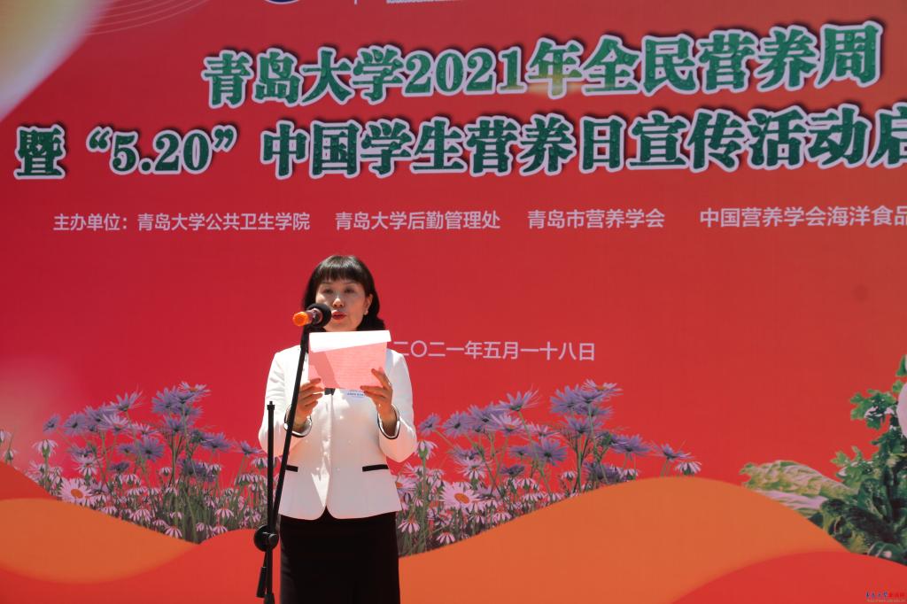 啟動儀式以公共衛生學院學生代表帶來的《全民營養歌》健身操拉開序幕。校黨委常委、副校長青島大學副校長劉彩云在致辭中指出全民營養周暨“5.20”中國學生營養日主題宣傳活動是貫徹落實《健康中國行動》《健康青島合理膳食行動》的重要舉措,我們要把營養健康理念、營養膳食指導有效融入為師生服務的全過程,全面促進大學生健康素養的提高和營養知識的普及。