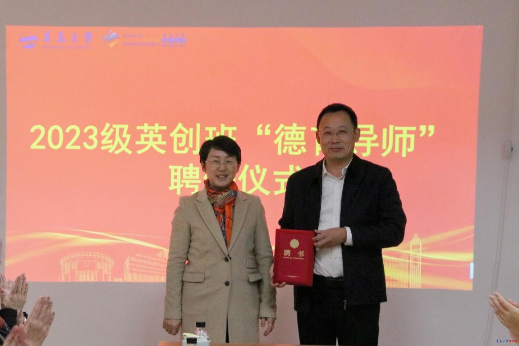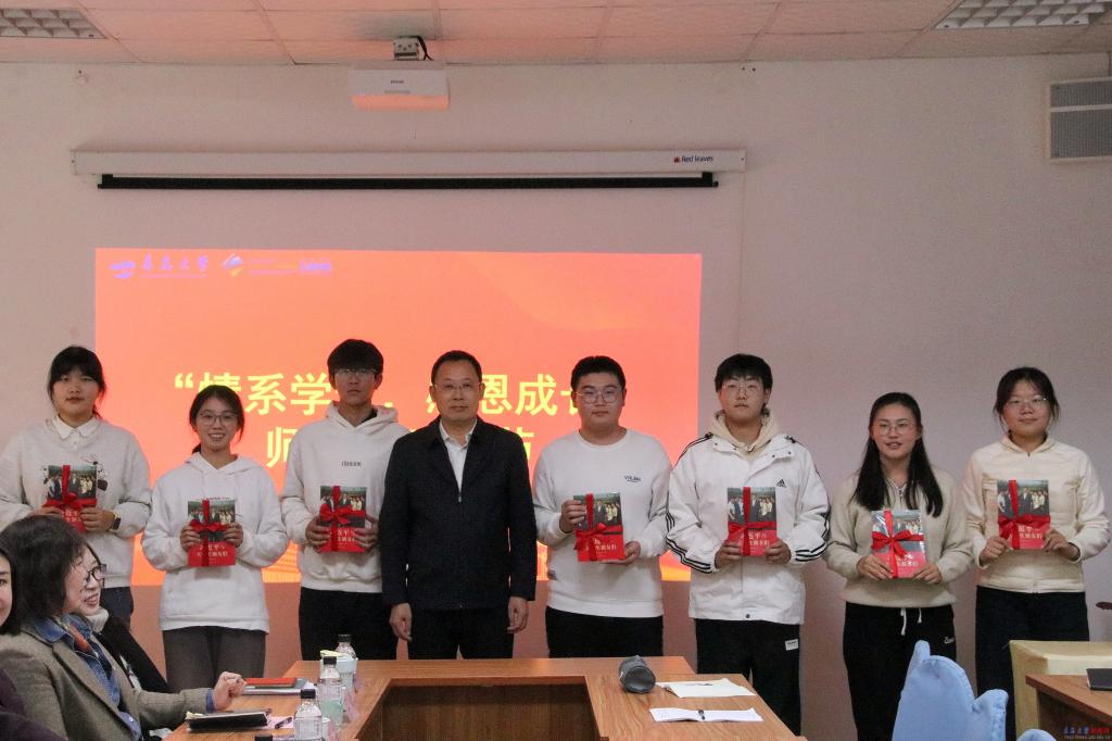 主題班會上,外語學院院長卞建華向劉恩賢頒發“德育導師”聘書。在“情系學生,感恩成長”師生互贈環節,劉恩賢為英創班贈送書籍《習近平與大學生朋友們》,并鼓勵同學們多讀,多實踐。
