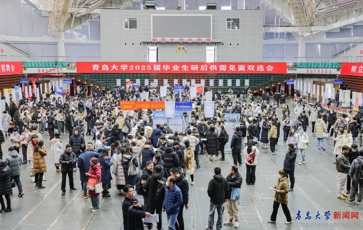 新聞網訊 1月3日,青島大學2025屆畢業生研后雙選會在浮山校區西院體育館舉辦。此次雙選會共吸引了150家用人單位進校攬才,提供就業崗位8000余個,涵蓋醫學醫藥、新一代信息技術、新能源、人工智能、新材料、高端裝備、教育等多個行業和領域。