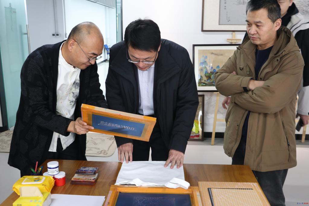 張守珩同師生們一起參觀青島大學(xué)紡織館,學(xué)生代表向張守珩贈(zèng)送全班同學(xué)共同制作的中國(guó)結(jié)。