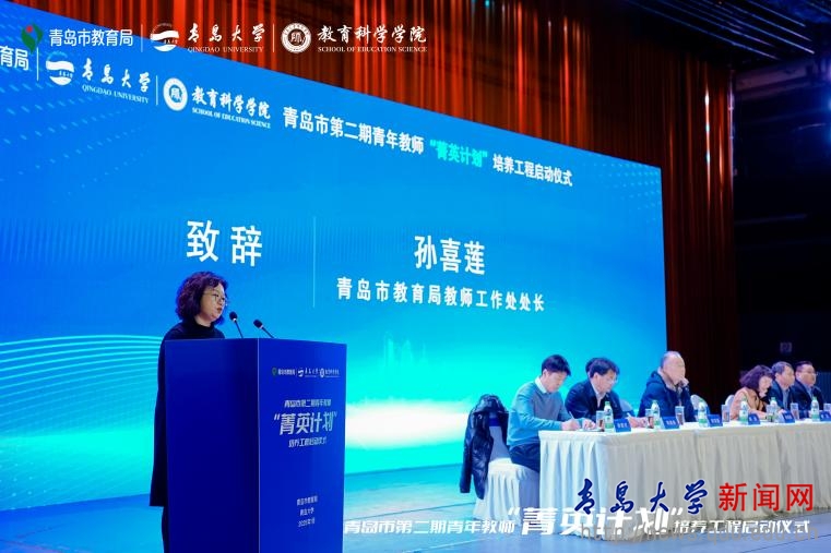 青島市教育局教師工作處處長孫喜蓮在講話中高度贊揚了青島大學的師資力量與教育成果,她希望青年教師們珍惜機遇,快速成長,攜手共進,為教育強國夢添磚加瓦。