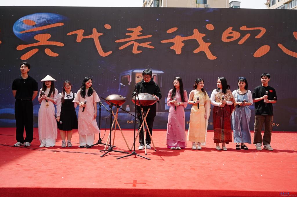 開(kāi)幕式后的文藝演出精彩紛呈,將活動(dòng)氛圍不斷推向高潮。演出分為“五洲雅韻”“藝彩紛呈”“和美與共” 三個(gè)篇章。法國(guó)留學(xué)生小合唱、俄羅斯民謠演唱,以及多國(guó)學(xué)子合唱經(jīng)典中文曲目,以歌聲傳遞跨文化情感。在舞蹈表演中,越南北寧歌曲、泰國(guó)的特色舞蹈、印度的集體舞蹈,盡顯異域風(fēng)情。此外,中國(guó)功夫螳螂拳展和五禽戲養(yǎng)生操剛?cè)岵?jì),重現(xiàn)中華武術(shù)和功法的剛健與智慧。