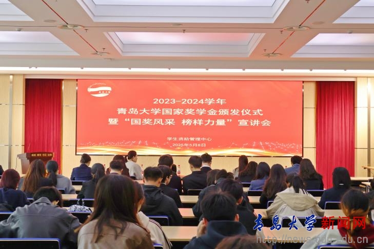 新聞網訊 為全面展現我校國家獎學金獲得者德才兼備、全面發展的卓越品質,充分發揮其示范引領作用,進一步培育勤學篤行、求實創新的優良學風,5月8日下午,學生資助管理中心在會議中心404會議室舉辦2023-2024學年國家獎學金頒發儀式暨“國獎風采 青春榜樣”宣講會。