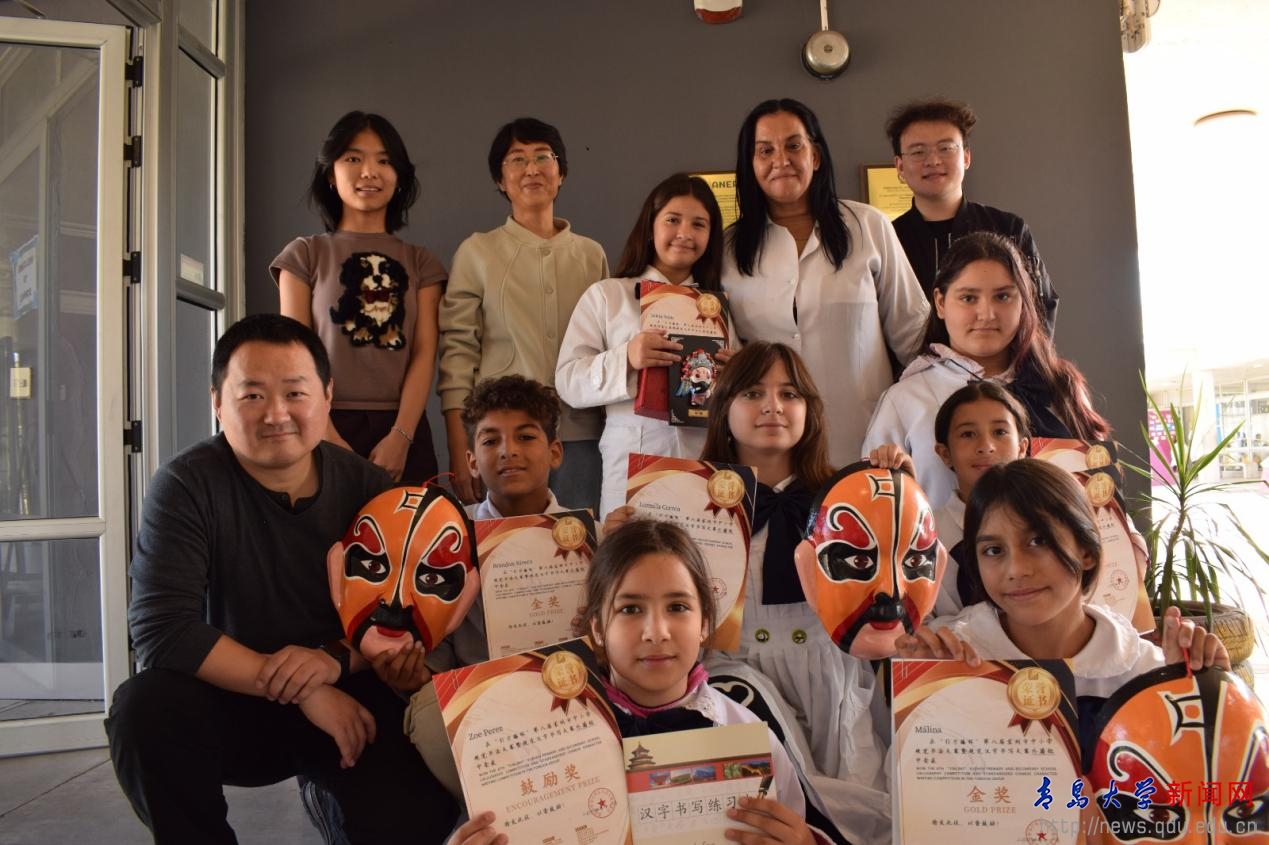 新聞網訊 近日,烏拉圭共和國大學孔子學院中方院長郭梅和烏拉圭中國小學校長Laura,為在第八屆“引力播杯”蘇州硬筆書法大賽中獲獎的孔院學員頒發證書和獎品。